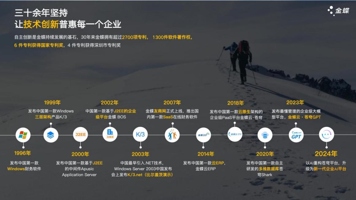 金蝶软件(中国)有限公司始创于1993年,是香港联交所主板上市公司(股票代码:0268.HK),总部位于中国深圳,是全球领先、中国第一的企业管理云SaaS公司。以“致良知、走正道、行王道”为核心价值观,以"予力企业成就不凡"为使命,致力成为“最值得托付的企业服务平台”。