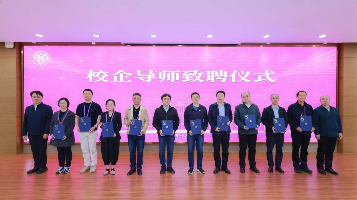 校企导师致聘仪式举行。罗延安、朱守非共同为企业导师及校内导师代表颁发聘书。
