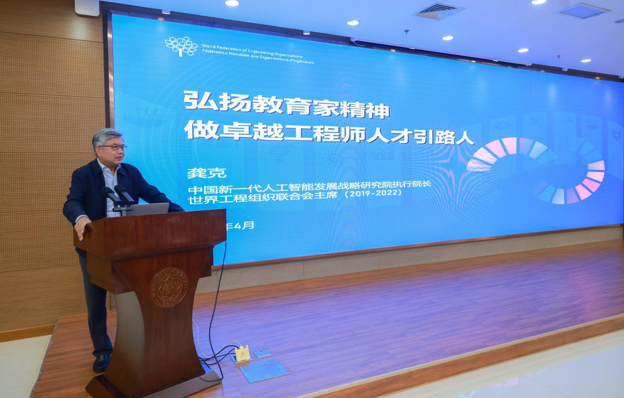 龚克作“弘扬教育家精神,做卓越工程师人才的引路人”专题报告。他紧扣教育家精神内涵,从人类可持续发展全局出发,深入解读数字化绿色化协同转型时代背景下卓越工程师培养的理念与使命,为全体导师践行引路人使命、做好人才培养工作指明方向、凝聚共识。