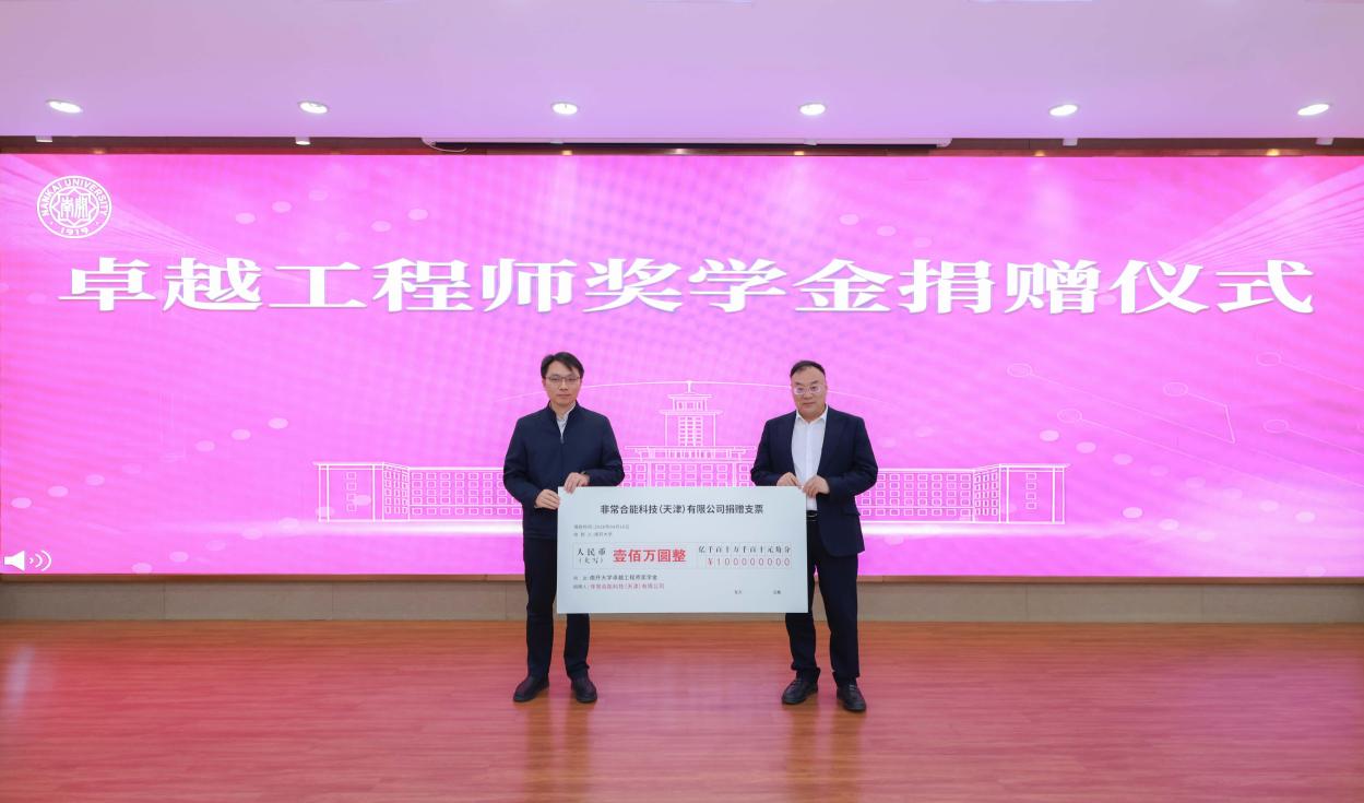 活动现场,“球报体育卓越工程师奖学金”捐赠仪式举行。欧阳玉岭员工携“非常合能科技(天津)有限公司”,向球报体育慷慨捐赠100万元,专项用于奖励工程硕博士培养改革新评价体系下球报体育优秀学子。